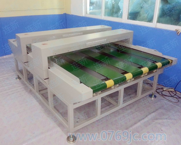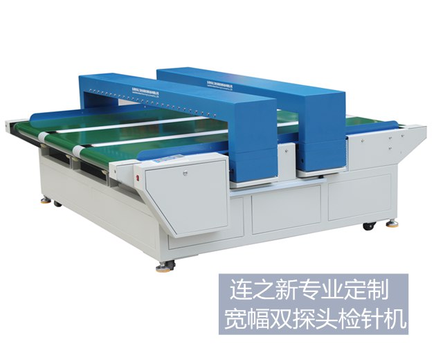 功能特點:連新牌LX-8500-III型寬幅輸送式雙探頭檢針機,驗針機機 是一款專門定制用來檢測床上用品及棉紡類幅寬較大的針織、片材、板材檢查斷針及金屬碎片用。幅寬由1米到5米都可按要求定制,定制的雙龍門檢測頭一次即可進行兩次檢測,確保全方位檢針避免漏檢。