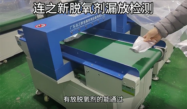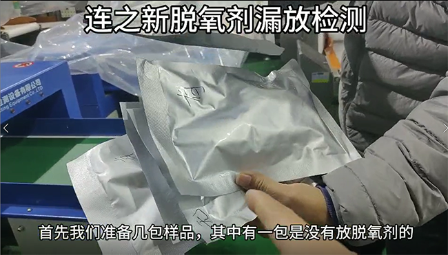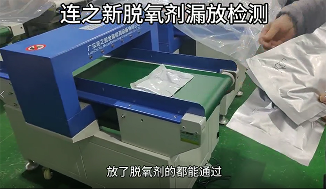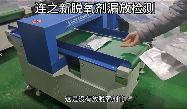 連之新脫氧劑漏放檢測(cè)視頻:有脫氧劑的通過(guò),沒有脫氧劑的報(bào)警退回。