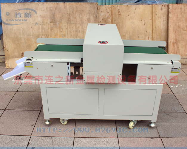 連新牌JZQ-7300B型翻板式輸送帶式檢針機(jī)專(zhuān)為高爾夫球等球體\輔料\飾品\鞋材等小件物品檢針設(shè)計(jì)制作,檢測(cè)到金屬異物的問(wèn)題產(chǎn)品可自動(dòng)翻板排除.空間占用少及電源消耗量更低,全鋼架靜電噴涂工藝制作.實(shí)用,耐用,美觀!