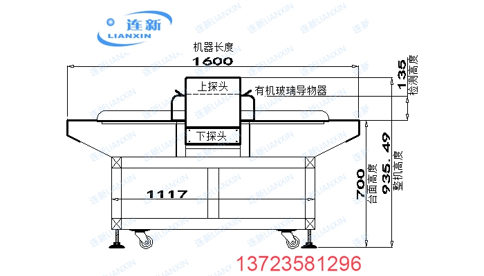 說(shuō)明:金屬漏裝檢測(cè)機(jī)靈敏度的高低由檢測(cè)高度(即通道或龍門(mén))和速度快慢來(lái)決定最高檢測(cè)精度。龍門(mén)越高,靈敏度就相應(yīng)降低。以上對(duì)應(yīng)的高度和檢測(cè)標(biāo)準(zhǔn)是在空機(jī)狀態(tài)下的檢測(cè)結(jié)果;檢測(cè)通道高度和寬度,都可以按要求定做!