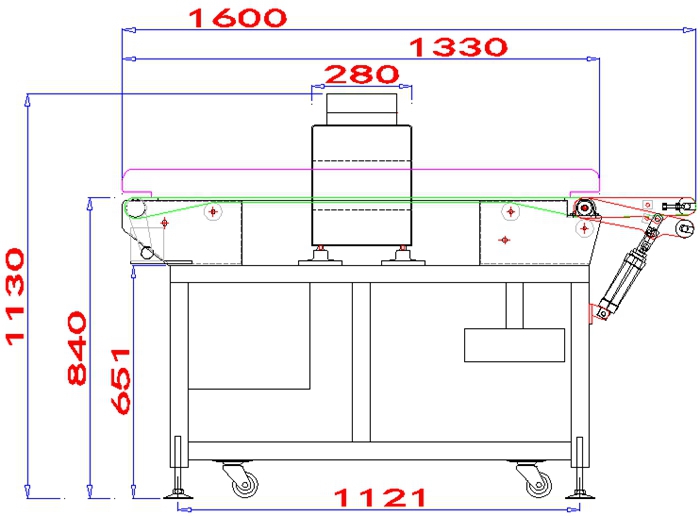7.檢測到金屬異物,輸送帶前端部分下沉分流排除異常產(chǎn)品!