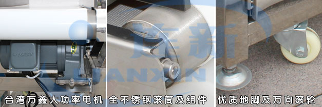 ■ 整機(jī)機(jī)架采用足3厘鏡面不銹鋼材料,傳送帶采用食品級白色PVC或PU皮帶,采用激光切割焊接技術(shù),日本品牌軸承及6厘厚無縫鋼管滾筒,采用日本三星同步帶及同步輪制作,德資JSCC品牌電機(jī);